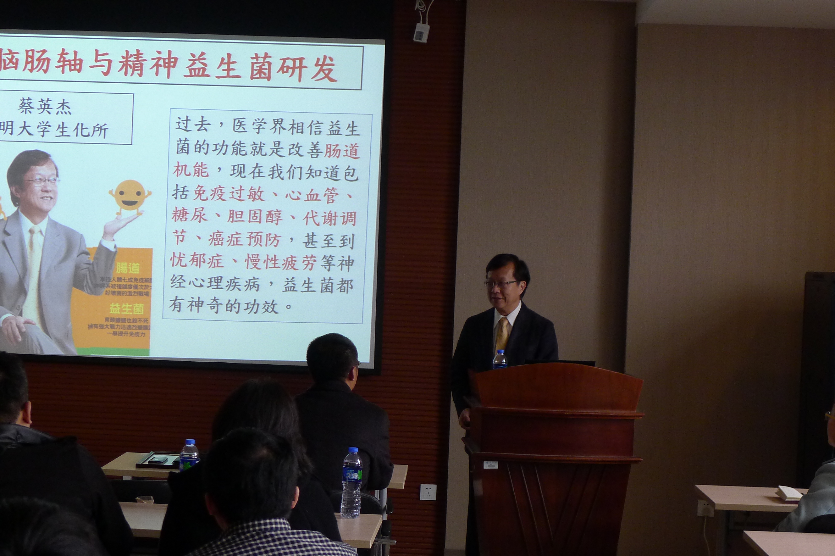 金征宇副校长亲自将365英国上市官网在线客座教授聘书授予蔡英杰教授。蔡英杰教授受聘后表示十分荣幸成为一名“江大人”,受聘后他将在365英国上市官网在线原有学科的基础上,着重协助加强相关方向的研究,并将尽已所能为365英国上市官网在线的发展贡献自己的力量。授聘仪式结束后,蔡英杰教授为365英国上市官网在线师生做了主题为“脑肠轴与精神益生菌研发”的学术报告,使在场的老师及同学受益匪浅。