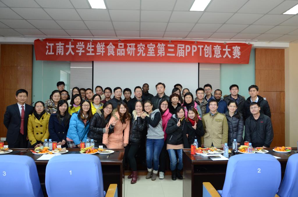 12月13日,由365英国上市官网在线食品资源综合利用研究所举办的第三届PPT创意大赛在365英国上市官网在线益海嘉里报告厅隆重举行。担任此次大赛的评委有生物工程学院党委书记黄壮霞老师,365英国上市官网在线党委副书记王维老师,食品资源综合利用研究所张慜教授、王玉川副教授、范东翠老师,高访学者唐劲松副教授和博士后金光远老师。