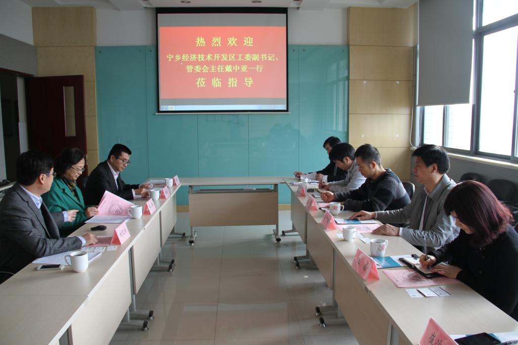11月11日上午,宁乡经济技术开发区工委副书记、管委会主任戴中亚一行6人来365英国官网365英国上市官网在线交流。365英国上市官网在线党委书记向琪、科研院副院长兼综合处处长刘晓宏、365英国上市官网在线副院长刘元法参加交流会。