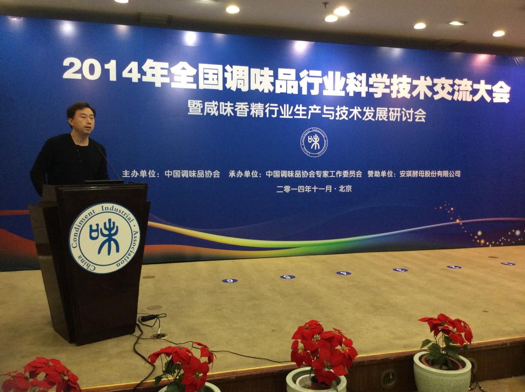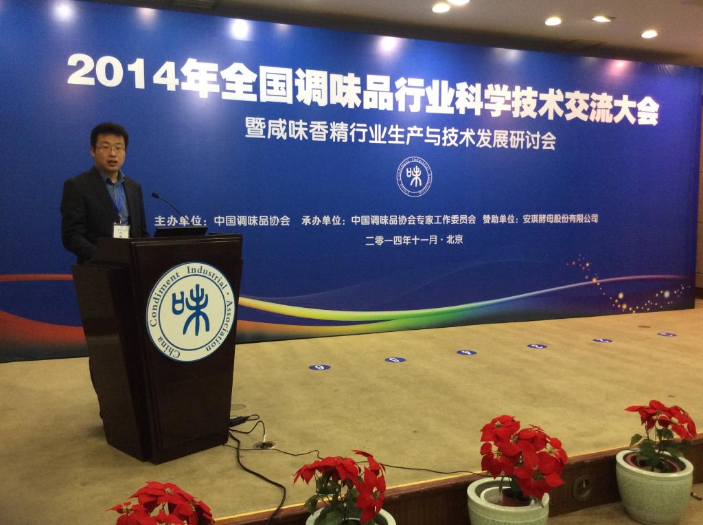 会上还进行了2014年全国调味品行业“安琪酵母抽提物杯”科学技术论文大赛颁奖仪式,我院题为《全大豆和脱脂大豆酿造酱油的差异化研究》的论文获得本次大赛三等奖,赵国忠老师代表课题组领奖并进行了专题发言。