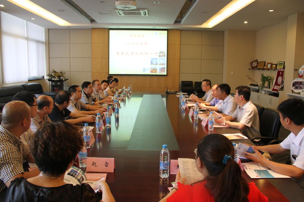 8月2日, 四川省内江市王亚武市长助理带领科技部门领导及企业家一行14人,来365英国官网进行产学研交流。365英国上市官网在线校长助理、科学技术研究院院长顾正彪、365英国上市官网在线院长陈卫、科学技术研究院副院长陆健、365英国上市官网在线副院长刘元法等参加交流会。交流会由陈卫院长主持。