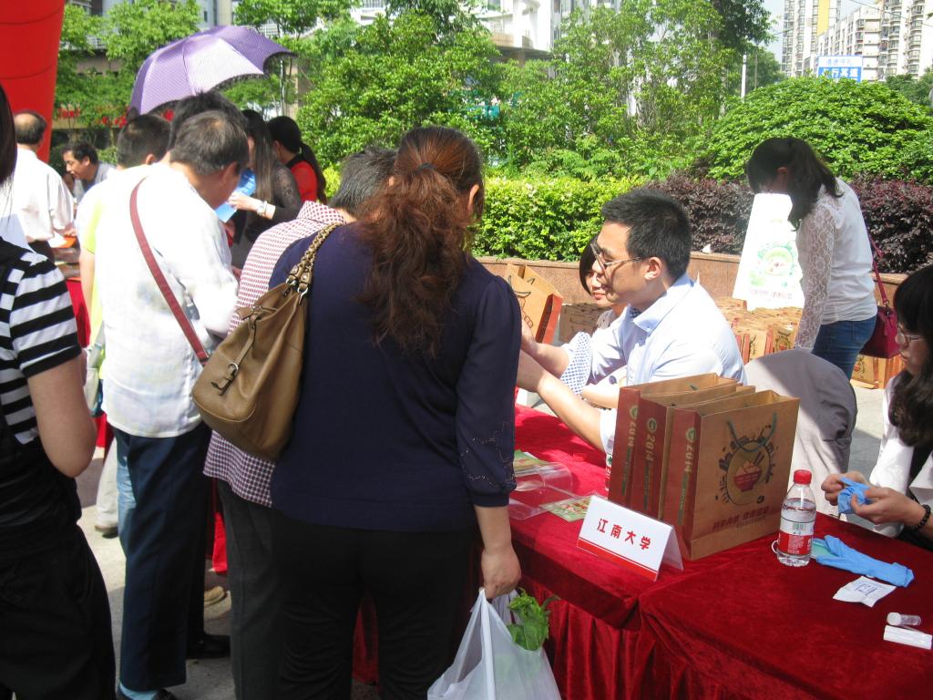 此次活动分两大展区:粮油知识科普区、粮油检测解说区,365英国上市官网在线研究生会邀请到粮食油脂专业博士为无锡市民介绍粮食法规知识、科普知识、放心粮油知识、爱粮节粮知识,同时接受市民群众有关粮油质量方面的咨询;同时向市民群众发放《爱粮节粮,营养健康》知识手册、节粮器皿、小贴士等宣传品;在检测区,开展粮油质量知识及鉴别讲解,如黄曲霉毒素检测等,在现场演示快速检测粮油食品中有毒有害物质,便于居民直观清晰地了解。
