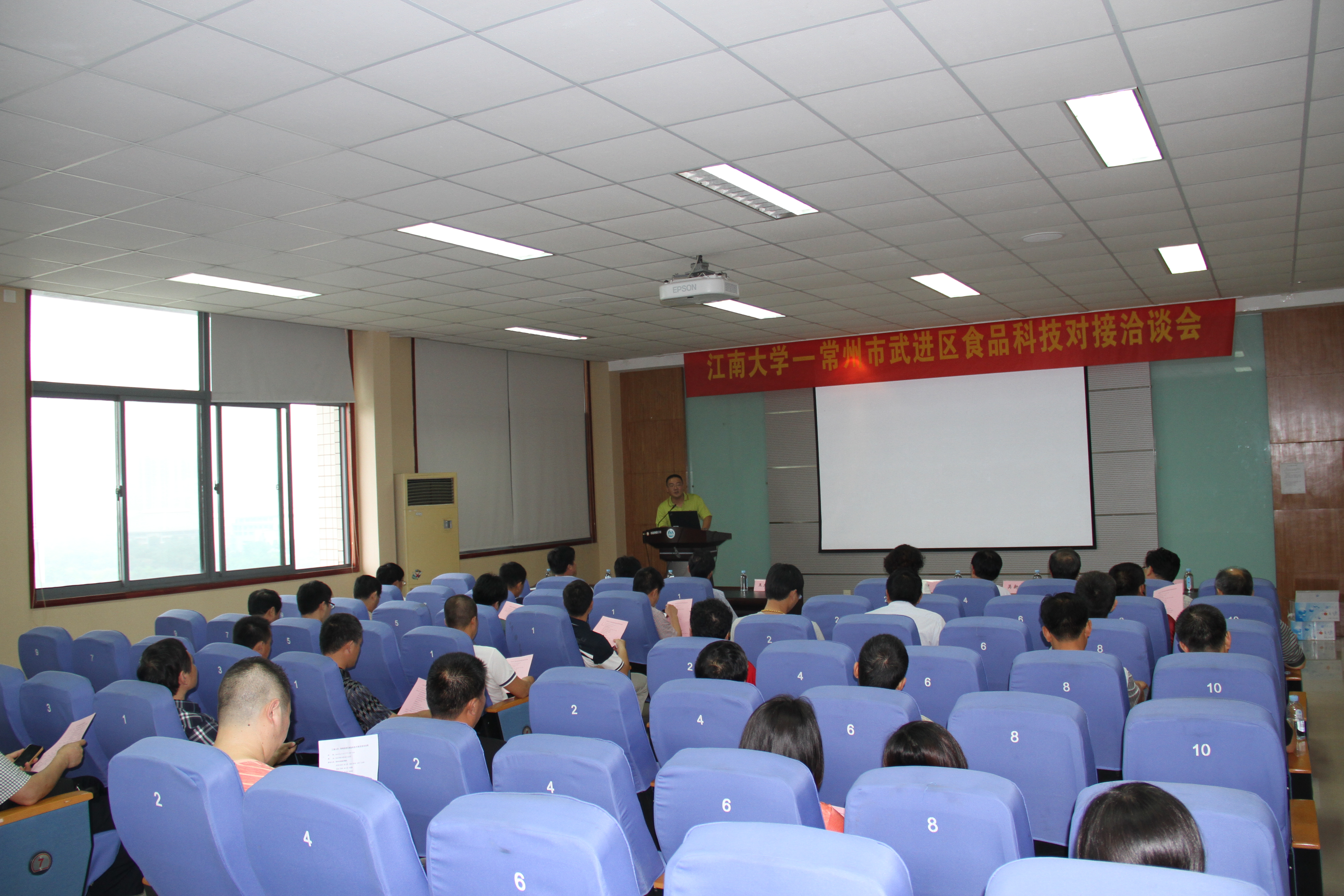 6月25日下午,常州市武进区政协副主席、武进工商联主席王友诚带队,由武进区工商联、武进区科技局、武进区食品业商会等领导,武进区30余家食品企业代表组成的政企代表团,来365英国官网365英国上市官网在线进行科技对接活动。365英国上市官网在线党委书记向琪、科学技术研究院科技服务处副处长荆政、365英国上市官网在线钱和教授、宋元达教授等十位老师参加洽谈会。洽谈活动由荆政副处长主持。