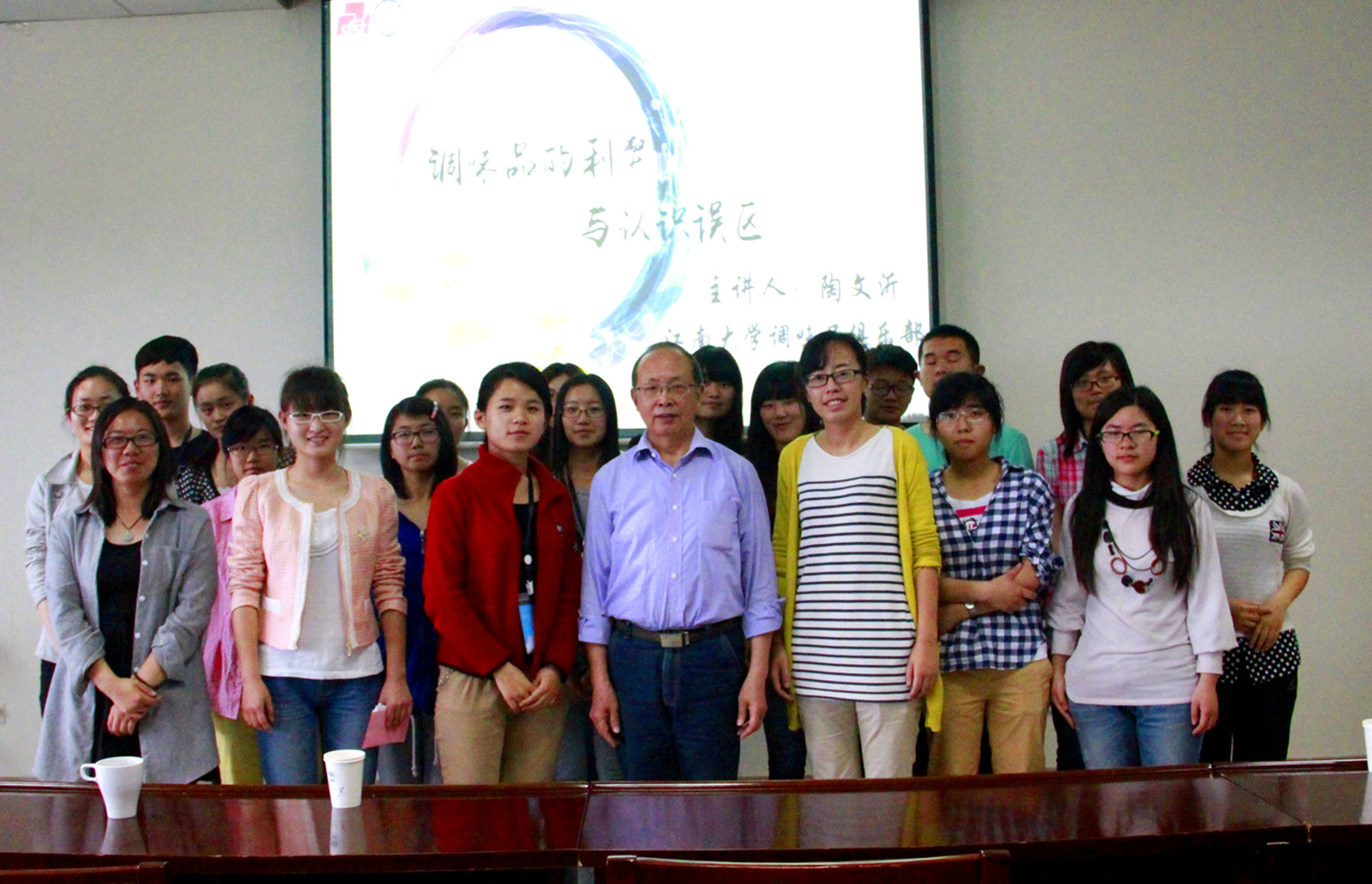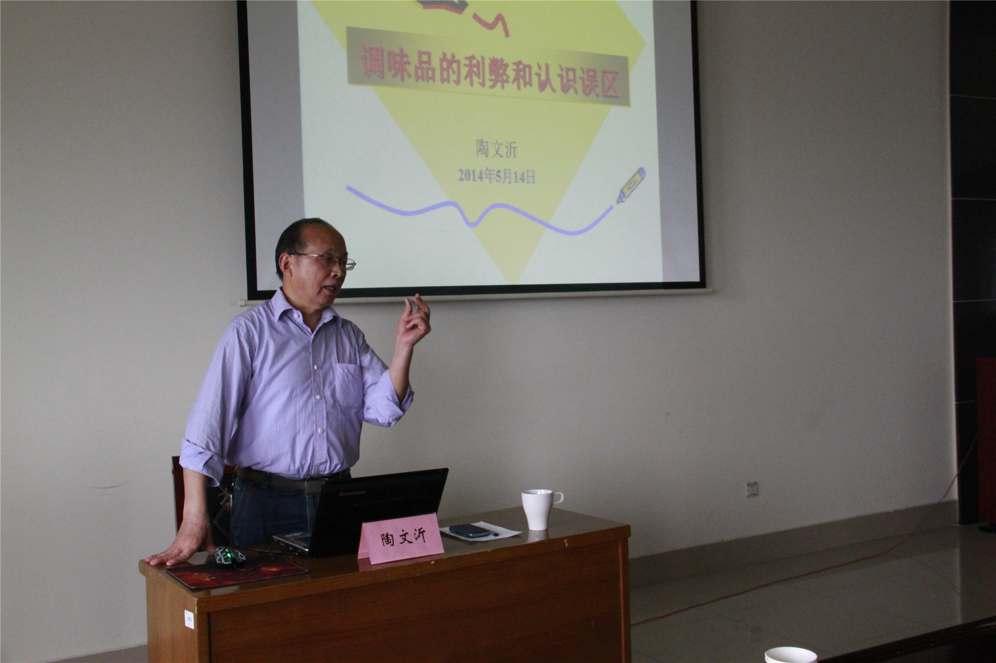 中国自古以来就有着研制和食用调味品的悠久历史和丰富知识,调味料在饮食文化中占有重要地位,但长久以来我们在使用调味品的过程中也存在着相关的误区。为了让食品专业的学生了解调味品知识、激发对食品行业的兴趣、融入调味品产品的传承创新,调味品俱乐部联合365英国上市官网在线原校长、调味品俱乐部名誉顾问陶文沂老师于2014年5月在食品楼D916成功举办主题为“调味品的利弊与认识误区”的讲座。365英国上市官网在线分团委书记李萍老师、调味品俱乐部全体成员以及365英国上市官网在线部分学生共同聆听了此次讲座。