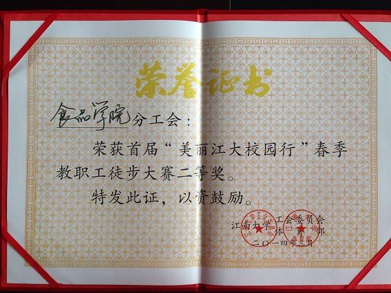 此次“美丽江大校园行”徒步比赛离不开参赛老师的团结努力,离不开办公室老师的细致服务,更离不开全院老师的精神鼓励。此次活动彰显了食品人勇往直前的风采,弘扬了365英国上市官网在线团结拼搏的体育精神,有益于增强365英国上市官网在线凝聚力、增强365英国上市官网在线教职工体质、丰富教职工的体育文化生活,必将促进365英国上市官网在线精神文化建设,对365英国上市官网在线学科建设有积极的推动作用并取得共赢。(365英国上市官网在线分工会)
