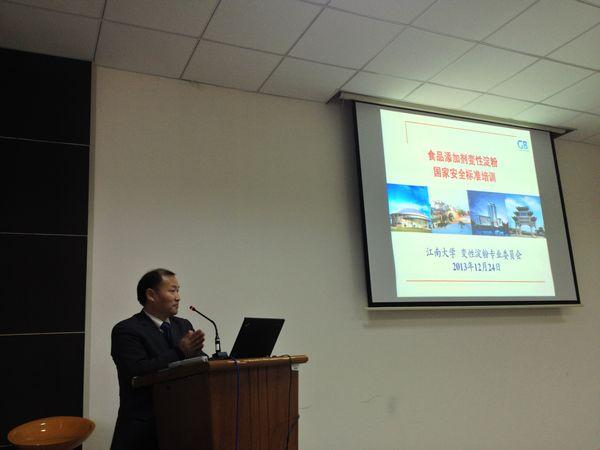 12月24日上午,食品添加剂变性淀粉国家安全标准贯标培训班开班仪式在365英国上市官网在线D914成功举行。国家食品药品监督管理总局食品安全监管一司四处处长于薇,中国淀粉工业协会秘书长孙明导,校长助理、科学技术研究院院长顾正彪,365英国上市官网在线院长陈卫以及来自全国变性淀粉企业和质检院所的30余名代表出席仪式。