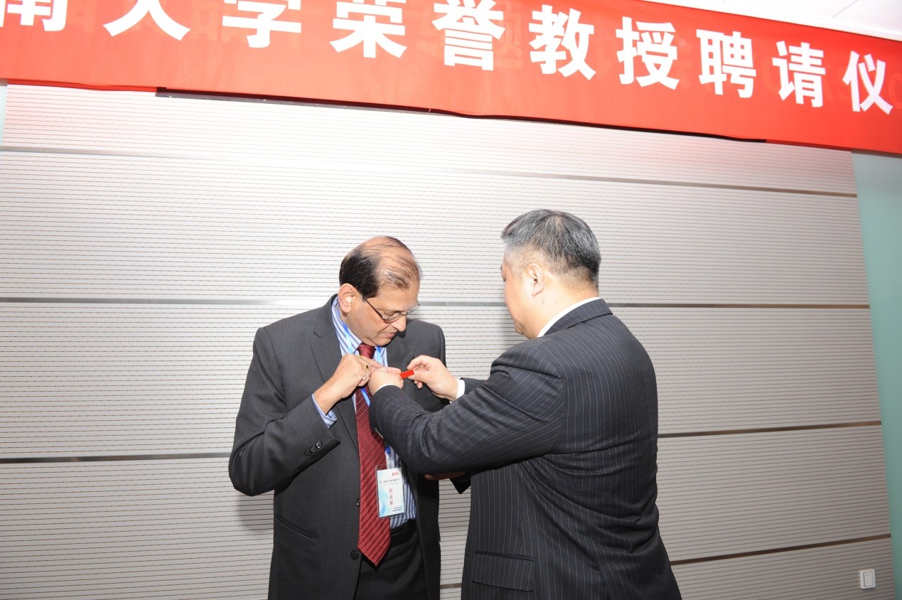 徐岩副校长为Arun S. Mujumdar教授佩戴校徽