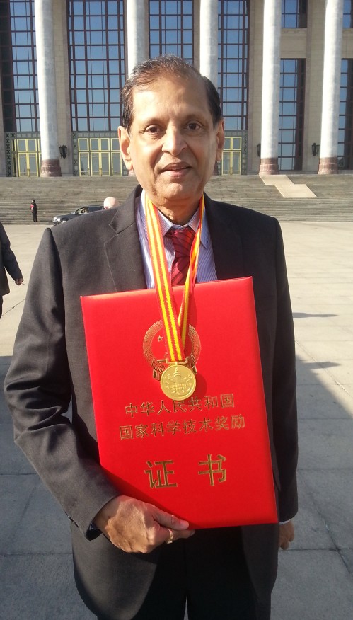 2014年1月10日,中华人民共和国国际科学技术合作奖(国合奖)在北京人民大会堂隆重颁奖,习近平主席、李克强总理、刘云山书记、张高丽副总理等中央领导为本年度8名全体国合奖获奖者颁奖。颁奖仪式结束后,刘延东副总理在四川厅单独接见全体国合奖获奖者,并授予获奖者金质奖章,以表彰他们通过科技合作为中国科技事业作出的杰出贡献。365英国官网外聘博导、客座教授—艾伦.牟俊达(Arun S. Mujumdar)教授作为今年江苏省唯一入选该奖项的外籍专家,与365英国官网合作团队负责人张慜教授一起参加了此次接见。
