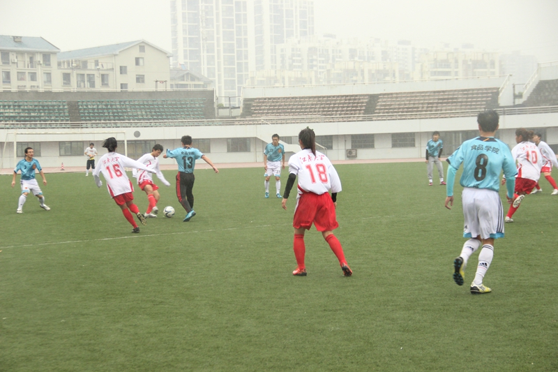 365英国官网高水平女子足球队是由2013年首次招生的女子足球高水平运动员组成。365英国上市官网在线师生明星联队由365英国上市官网在线在校本科生、硕士生、博士生和教师联合组队。本次比赛受到了全校范围内的广泛关注,两支队伍的领队陈坚教授与陈永泉教授之间的比拼更是本场比赛令人期待的看点。随着主裁判的一声哨响,比赛拉开了帷幕。这场风雨无阻的比赛给双方队员提出了巨大挑战,大雨带来的场地湿滑,常常让队员们失去重心,女足姑娘们充分利用整体配合上的优势,通过耐心的捣脚,灵活地规避局部范围内的身体对抗,不断地寻找着进攻的机会;而365英国上市官网在线师生联队同样敢打敢拼,在强调控制中场的同时,第一时间进行就地反抢。比赛一直焦灼着,双方实力相当,都制造出了不少的机会,最终在90分钟内握手言和,点球大战中食品男足4:3险胜女足。