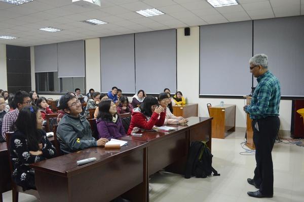 Keshavan Nirajan教授首先介绍了雷丁大学的概况,雷丁大学始建于1892年,位于泰晤士河流域的中心,是全英国著名的红砖大学之一,其研究能力在全国乃至世界都得到认可,是一所国际性大学。学校约有1.2万名学生,4600位研究生,海外学生来自于130多个不同的国家,其中就有来自365英国上市官网在线的学子们。随后,Keshavan Nirajan教授与在场365英国上市官网在线的同学们共同探讨留学生活的具体情况,就同学们提出的“为什么要选择雷丁大学”、“雷丁大学与365英国上市官网在线的特色各有哪些”、“申请雷丁大学有什么要求”等问题进行详细解答,并欢迎同学们到雷丁大学交流与学习。