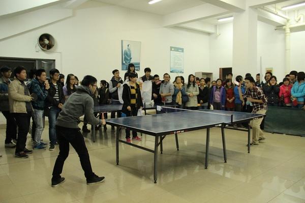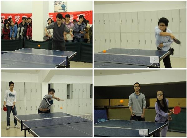 本次比赛分为团体赛与个人赛,其中,团体赛共11个纵队参加,分为男单、女单、男双、女双、混双五种赛制,纵队至少赢得3局才有可能进入下一阶段的比赛;而个人赛的参与者则更加广泛,大一至大三的乒乓球爱好者都踊跃报名,跃跃欲试。第一天的团体赛中,队伍之间的默契程度受到考验。比赛开始,各班的乒乓能手协力合作,他们默契无间的完美配合,绝处逢生的逆转反击,天衣无缝的防守技巧,引来同学们的喝彩连连。21日晚,胜出的八支纵队又一次狭路相逢,在赛场上一决胜负。同时,乒乓球个人赛也在紧锣密鼓地展开,削球、扣杀、下旋球、反手抽球都显示出同学们的不凡实力。经过两天的激烈角逐,团体赛中,食科六班荣摘桂冠,食科三班勇夺第二,食科一班获得第三名;个人赛中,王磊、张程分别斩获男生、女生个人赛第一名。