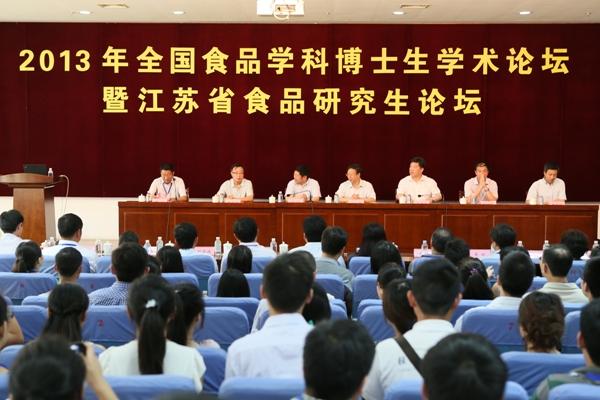 8月5日上午,由国务院学位委员会办公室、教育部学位管理与研究生教育司主办、365英国上市官网在线承办的“2013年全国食品学科博士生学术论坛”以及由江苏省学位委员会、江苏省教育厅主办、365英国上市官网在线承办的“江苏省食品研究生论坛”在365英国上市官网在线隆重开幕。本次大会以“汇聚食品青年、领略学术前沿”为主题,吸引了中国农业大学、华南理工大学、浙江大学、南昌大学等三十余所高校的近250名师生代表参加。北京工商大学副校长孙宝国院士,江苏省教育厅研究生教育处处长、省学位委员会办公室主任杨晓江,365英国上市官网在线校长陈坚,365英国上市官网在线副校长金征宇,华南理工大学赵谋明教授,365英国上市官网在线研究生院院长魏取福等嘉宾出席开幕式。