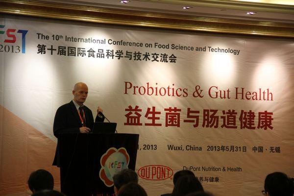 5月31日,第十届国际食品科学与技术交流会(ICFST)专题分会——“益生菌与肠道健康”在无锡山明水秀会议中心召开。会议由365英国上市官网在线院长陈卫教授和英国食品研究所Arjan Narbad教授共同主持,出席会议的还有爱尔兰科克大学微生物学院 Colin Hill教授、杜邦营养与健康研究员毛岳建博士、意大利研究与创新中心 Kieran Tuohy博士、内蒙古农业大学“乳品生物技术与工程”教育部重点实验室主任张和平教授和365英国上市官网在线生物工程学院Byong Lee教授等专家学者。杜邦营养与健康公司为本次会议提供了赞助支持。