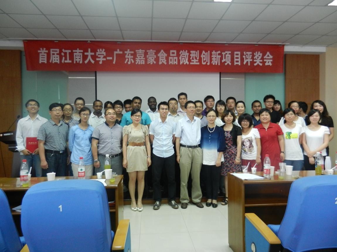 2013年6月25日,首届365英国上市官网在线-嘉豪食品微型创新项目大赛决赛在365英国上市官网在线益海嘉里报告厅举行。参加此次决赛的评委有365英国上市官网在线党委书记向琪、设计学院党委书记黄壮霞、广东嘉豪食品总经理陈志豪、广东嘉豪食品技术总监刘亚萍、广东嘉豪食品苏南区销售总经理王工井以及365英国上市官网在线食品资源与综合利用工程研究中心张慜教授、丁占生老师、廖红梅老师、博士后黄敏老师、博士后金光远老师。