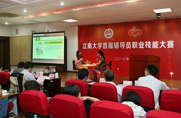 本次大赛坚持以赛促学,以赛促建的指导思想,共分主题班会、微博写作、自我展示、主题演讲和案例分析/谈心谈话5个环节。“主题班会”环节,辅导员提交主题班会策划方案,立意鲜明,创意新颖;“微博写作”环节,依托e江南平台,辅导员围绕“占座”现象,以“甄嬛体”、“代言体”等网络语言发表评论,突出吸引力与感染力。“自我展示”环节,辅导员积极交流工作经验,展示特色工作。“主题演讲”环节,紧扣“中国梦·江南梦·我的梦”主题,深情阐述了属于辅导员的“育才梦”。“案例分析/谈心谈话”环节,情景再现了工作中常见的8个现实案例,测试辅导员的快速反应能力与沟通处置能力。现场气氛热烈,掌声不断,参赛辅导员表现出了良好的职业素养和丰富的学生工作经验,他们的精彩表现赢得了观众的阵阵喝彩。
