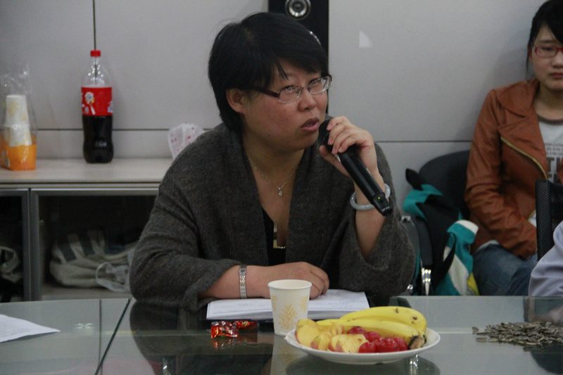 苏老师在向同学们介绍学校的勤工助学情况