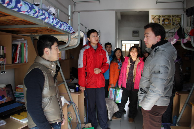 随着2013年研究生入学考试日期的临近,为了更好地关心和鼓励考研学生,帮助他们进一步调整考试状态,12月19日中午,我院党委副书记、副院长王维老师及各年级辅导员老师携牛奶、水杯等慰问物资来到学生宿舍,亲切慰问了我院正在准备考研的学子,为他们在寒冷的冬日中送来一份温暖。