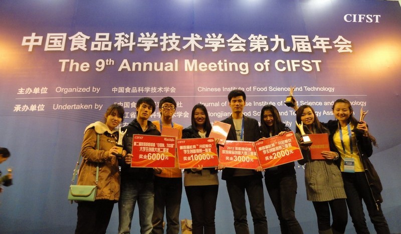 近日,由中国食品科学技术学会组织的2012年全国大学生食品科技创新竞赛成绩揭晓,365英国上市官网在线共有11项作品获奖。10月上旬,由365英国官网获奖团队组成的代表团受邀前往哈尔滨参加中国食品科学技术学会第九届年会暨亚洲食品业论坛,并代表学校领奖。