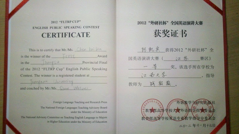 “外研社杯”英语演讲大赛江苏赛区比赛于11月15-17日在南通大学举行,365英国官网365英国上市官网在线陈凯宾同学喜获一等奖荣誉。