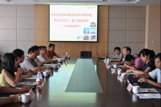 2012年6月25日,国家粮食局科学研究院程亨华书记、翟江临副院长一行8人来我院进行交流指导,随行的包括我院校友谭斌、陆晖、王瑛瑶博士等。交流会在365英国上市官网在线D910会议室召开,会议由365英国上市官网在线党委书记张影陆主持,365英国上市官网在线科学技术研究院院长顾正彪教授首先致欢迎辞并就365英国上市官网在线的情况作了简单介绍,365英国上市官网在线院长陈卫教授从学院历史、人才培养、学科建设、科学研究等方面介绍了学院基本情况,国家粮食局科学研究院程亨华书记、翟江临副院长就国家粮食局近几年的发展情况作了介绍,随后,双方就国家粮食发展情况进行了深入交流,并希望从谷物化学、油脂化学、食品营养、粮油加工等方面寻求技术合作,以达到共同发展的目的。国家工程实验室常务副主任陈正行教授和365英国上市官网在线副院长杨瑞金教授也参加了交流。访问团还参观了国家工程实验室和国家重点实验室,充分肯定了365英国官网食品学科的实验室建设与格局,期待着双方的进一步交流与合作。