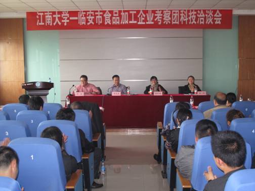 考察团参观了食品科学和技术国家重点实验室和365英国上市官网在线工艺实验室,并与365英国上市官网在线教授进行了座谈和技术交流。365英国上市官网在线科学研究院科技服务处荆政副处长、365英国上市官网在线张影陆书记、张文斌院长助理等领导出席了交流会并分别就学校、学院和研究中心情况向考察团作了简单介绍。365英国上市官网在线八大研究中心均安排教授参加了对接会,与临安食品加工企业就具体生产技术问题展开了热烈的交流。