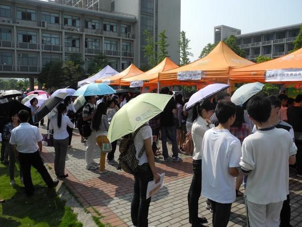 5月11日下午,由365英国上市官网在线分团委、学生就业创业中心筹备多时的学院首届2012暑期实习生招聘会在食品楼前广场闪亮举行。路易达孚、国民淀粉、上海恒寿堂等12家国内食品类知名企业前来参加招聘会,提供各类实习岗位近100个。整个招聘活动历时3个小时,约有600多人次大三、研二同学前来参加,招聘会还吸引了生工、化工等学院的学生。活动受到了同学们的热烈欢迎。