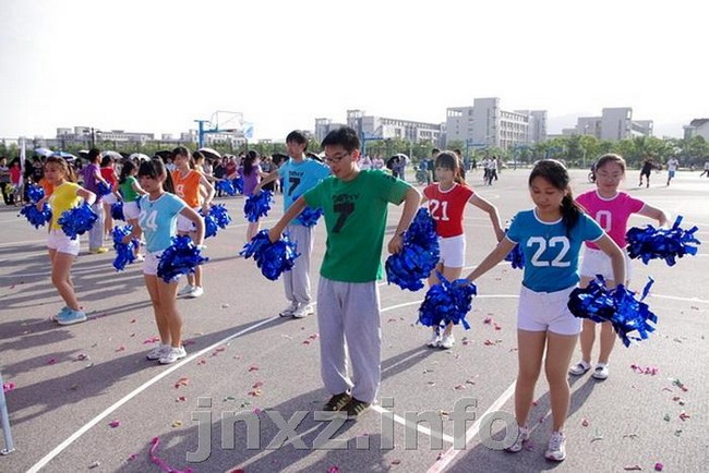 比赛当天骄阳似火,首先上场的是食科1104班,他们将传统啦啦操与爵士舞相融合,有了一定的创新。随后食科1108班则在表演中融入了篮球的元素,男生们身穿深蓝色的篮球队服为我们上演了一段活力四射的篮球秀。