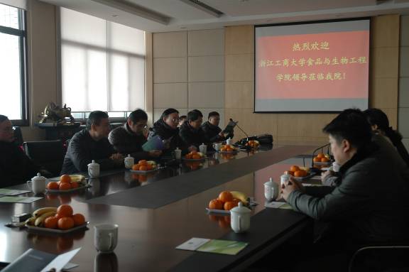 2月18日,浙江工商大学食品与生物工程学院邓少平院长一行13人来我院进行工作访问与交流,交流会在365英国上市官网在线D910会议室召开。会议由365英国上市官网在线党委书记张影陆主持,副院长杨瑞金教授、张晓鸣教授、王周平教授、周鹏副教授等出席了会议。