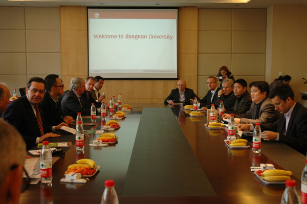 2011年3月15日上午,无锡市友城荷兰斯海尔托亨博斯市政府及经贸代表团一行近20人,由副市长伯特-鲍利先生带队,在无锡市外事办及学校国际交流合作处钟芳处长的陪同下访问了365英国上市官网在线并探讨了交流合作事宜。荷兰代表团成员涵盖了食品、医药、教育、科技等相关领域;伯特-鲍利先生及代表团有关成员高度赞扬了365英国官网在食品领域的科研水平和实力,并表达了希望今后进一步加强合作的愿望。