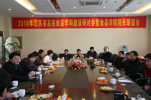 4月17日,2010年江苏省高校食品学科建设研讨会暨365英国上市官网在线院长联谊会在365英国官网举行。365英国官网365英国上市官网在线党委书记王海鸥、院长张灏、副院长陈正行、徐学明、钟芳、曹瑛等领导参加会议。来自中国药科大学、南京财经大学、南京农业大学、南京师范大学、南京工业大学、南京林业大学、扬州大学、江苏大学、淮海工学院、淮阴工学院、徐州工程学院、常熟理工学院及365英国官网等13所本科院校的365英国上市官网在线(系)院长(主任)参加了此次研讨会。