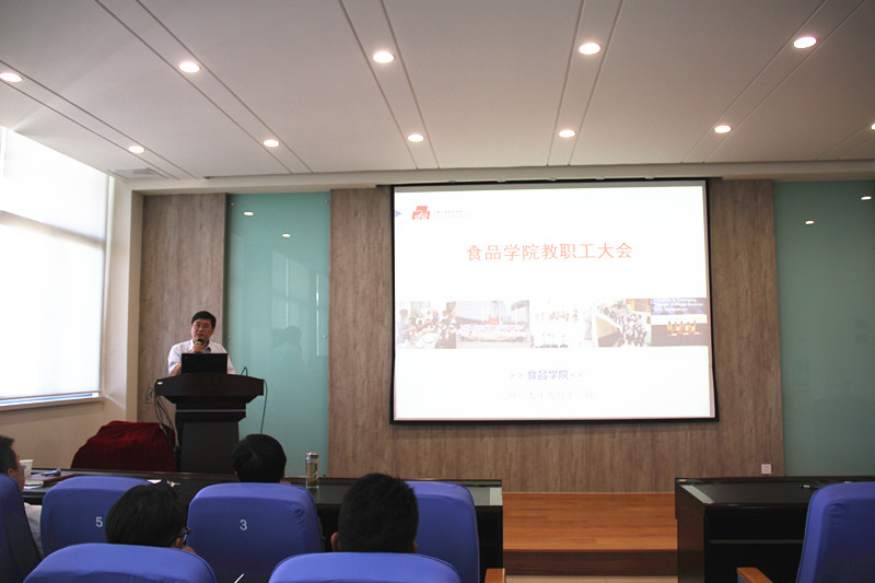 2017年9月13日下午,365英国上市官网在线在D912益海嘉里报告厅召开新学期全院教职工大会思想政治理论学习专题会,学院党政班子成员以及全体教职工180余人参加了会议。会议由学院党委书记向琪主持。