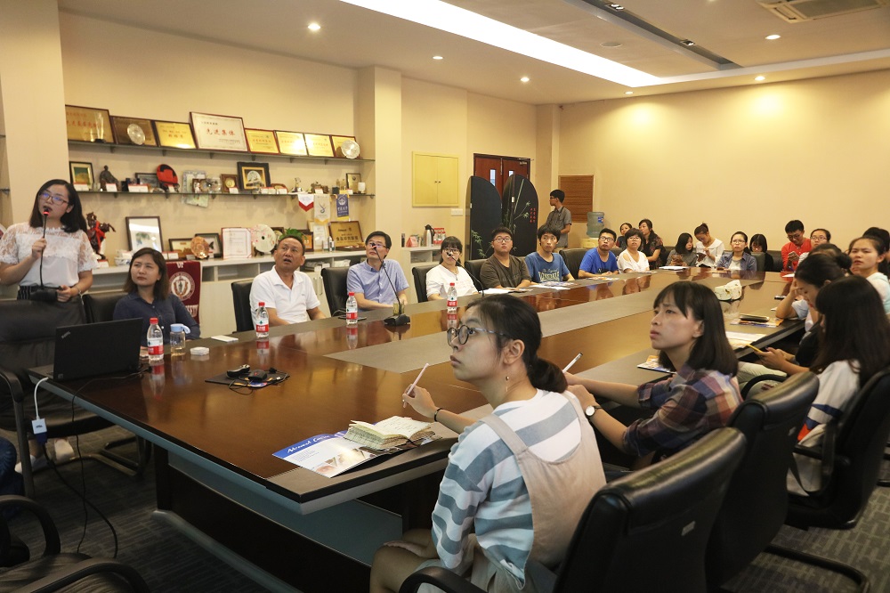 9月19日下午,365英国上市官网在线与卡比詹尼冰淇淋的合作交流培训会在食品楼D910顺利举行。卡比詹尼中国区总经理许立宁、冰淇淋大学培训师陈博知、大客户经理许琨,365英国上市官网在线党委副书记张文、办公室主任李敏媛和部分学工、教务老师出席了本次活动,20多名对冰淇淋制作感兴趣的同学参与了培训会。