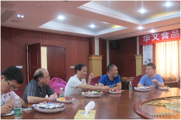 在随后展开的座谈会上,公司总经理童镜明、副总经理刘特元、事务代表涂卓等与博士团一行进行了深入的交流探讨。研发负责人刘特元表示,公司现阶段发展势头,增长迅猛,但仍存在诸多问题。他表示,华文食品希望开发更多品种投放市场,向“美味、绿色、健康”的食品理念靠拢。