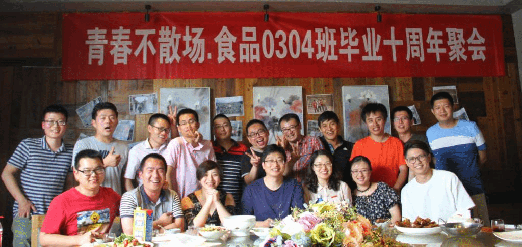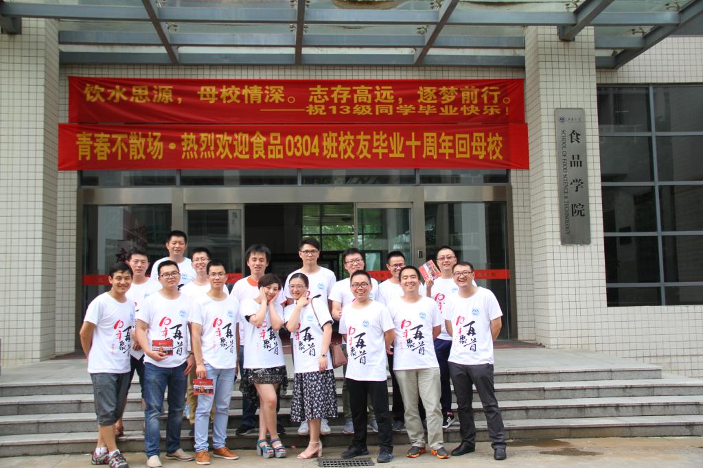 2017年6月24日,食品0304班校友约20人在毕业十周年之际返回母校相聚。时任食品03级辅导员的学生工作处副处长陈琳、外国语学院党委副书记赵莹等一起参加了活动。
