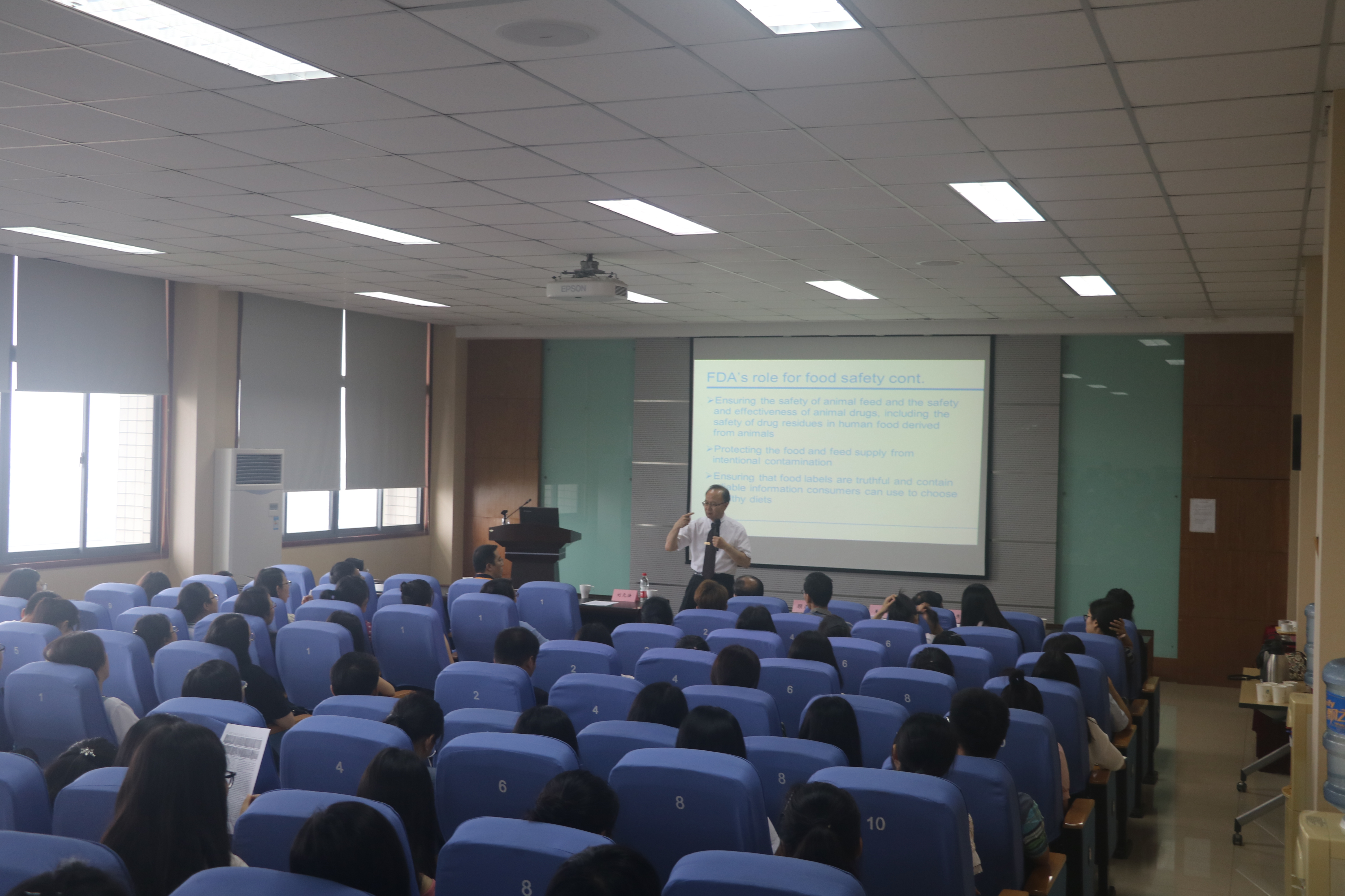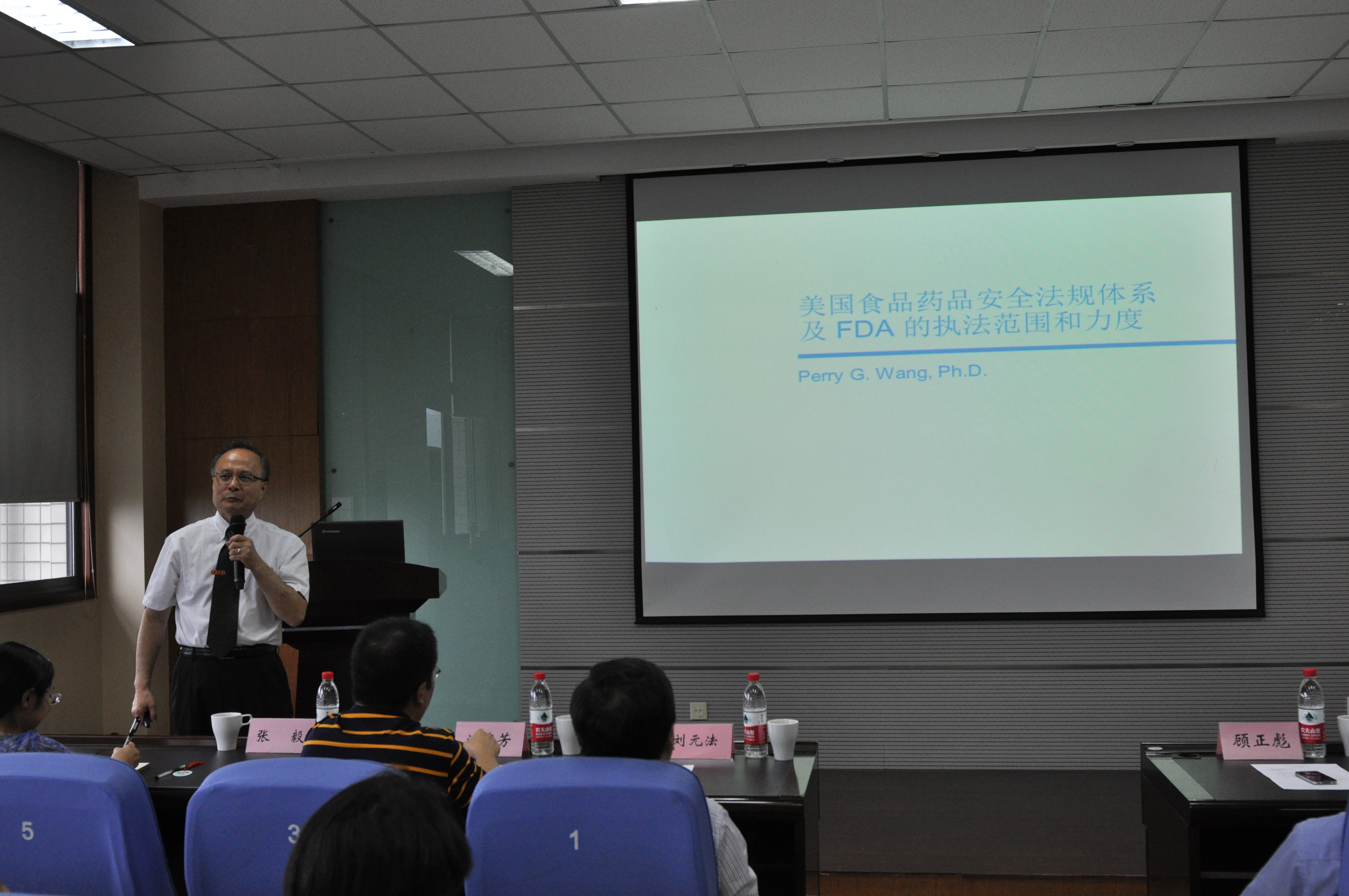王功明博士作了题为“美国食品药品安全法规及FDA的执法范围和力度”的学术报告