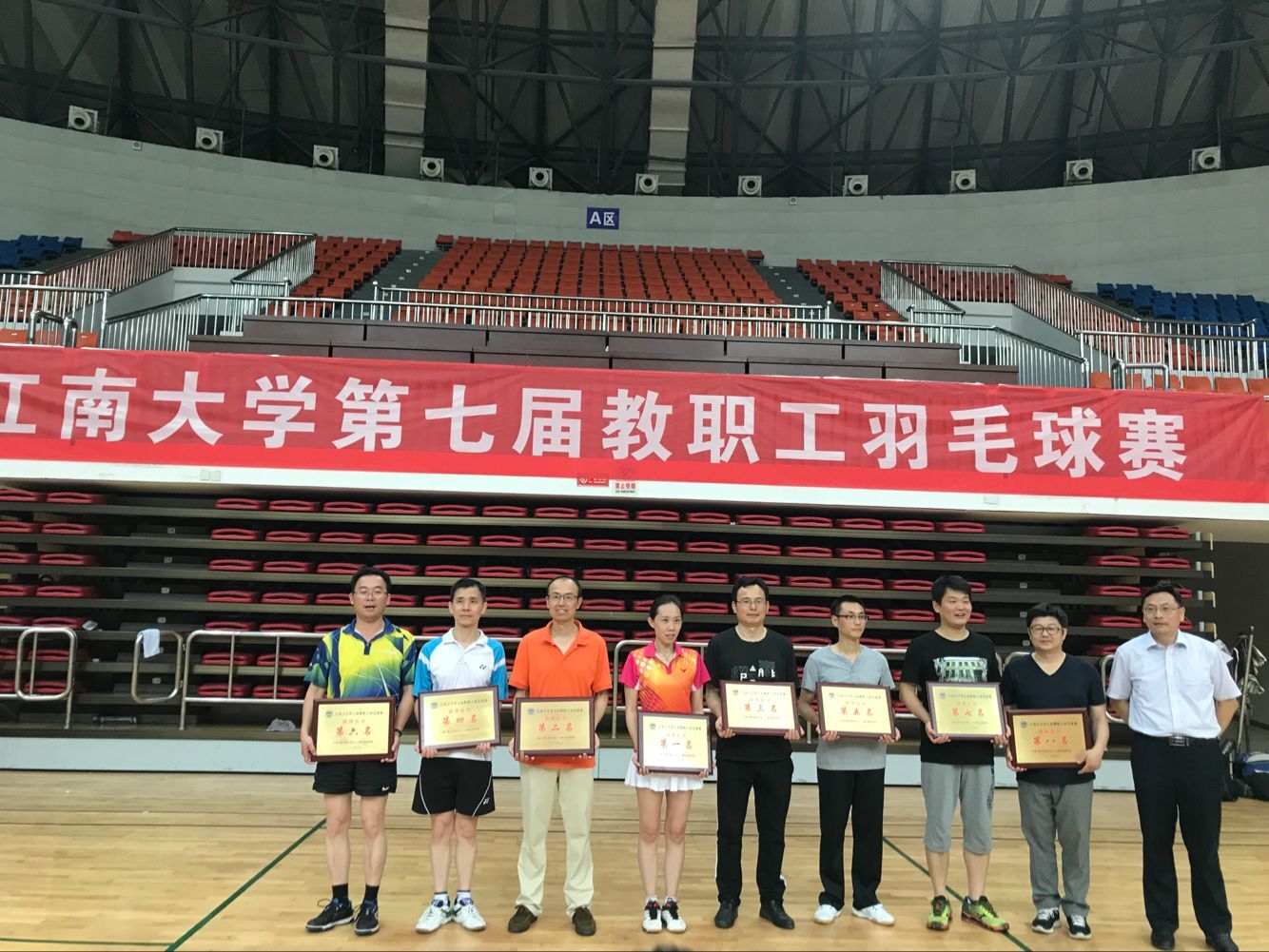 365英国上市官网在线分工会荣获第七届教职工羽毛球赛第二名颁奖合影