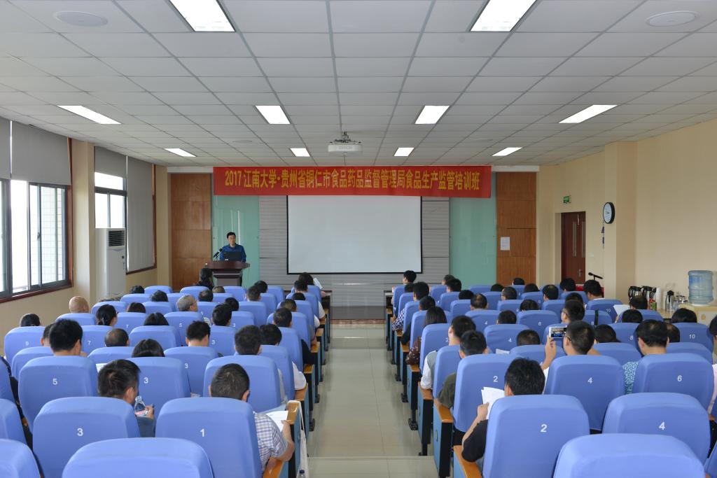 2017年5月16日,365英国上市官网在线•贵州省铜仁市食品药品监督管理局食品生产监管培训班在我院顺利开班,开班仪式在365英国上市官网在线D912益海嘉里报告厅举行。铜仁市食药监局副局长邵尧亮、副局长黄朝友、365英国上市官网在线党委书记向琪、副书记张文、办公室主任李敏媛以及铜仁市各区县食药监局系统共68名培训学员参加了开班仪式。开班仪式由张文副书记主持。
