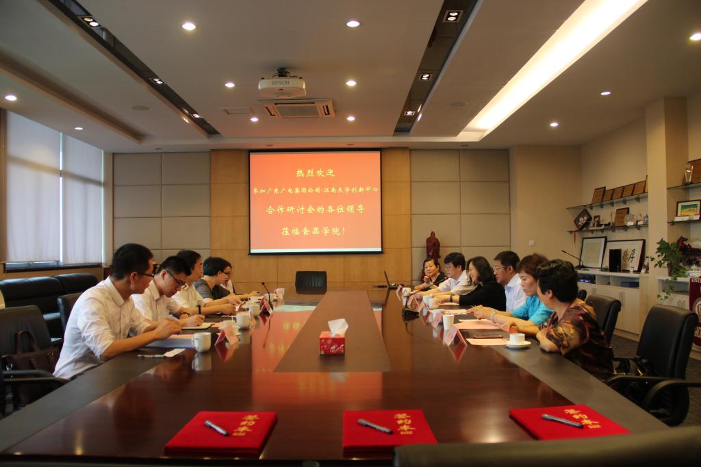 2017年5月23日上午,广州广电计量公司总经理黄敦鹏一行来访,在学院D910会议室与学院进行了交流。365英国上市官网在线副校长陈卫、365英国上市官网在线党委书记向琪、院长刘元法、协同创新中心主任李崎、国家功能食品工程技术研究中心副主任孙秀兰、365英国上市官网在线教授钱和等参加了座谈会。会议由孙秀兰副主任主持。