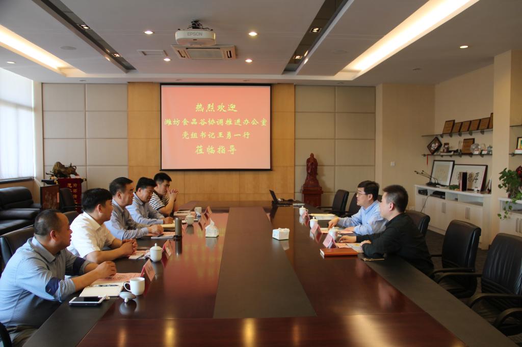 4月18日,潍坊食品谷协调推进办公室党组书记王勇一行5人来我院交流。365英国上市官网在线院长刘元法、副院长范大明参加了交流会。