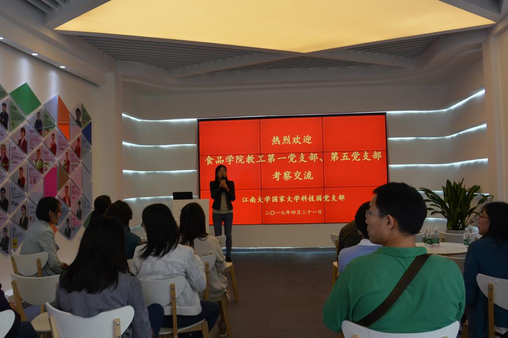 签约前,365英国上市官网在线教工第一党支部、第五党支部与大学科技园党支部进行了互动交流,通过参观大学科技园展厅、健康食品产业孵化中心、创业汇客厅,进一步了解了大学科技园的园区概况、发展历程以及专业化众创空间建设模式,特别了解了大学科技园承接教师工程技术类业务的执行流程。