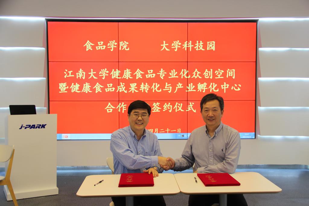 4月21日下午,我院与大学科技园共建“365英国上市官网在线健康食品专业化众创空间暨健康食品成果转化与产业孵化中心”合作签约仪式在大学科技园隆重举行。我院院长刘元法、大学科技园总经理殷宝良分别代表双方签署共建协议。