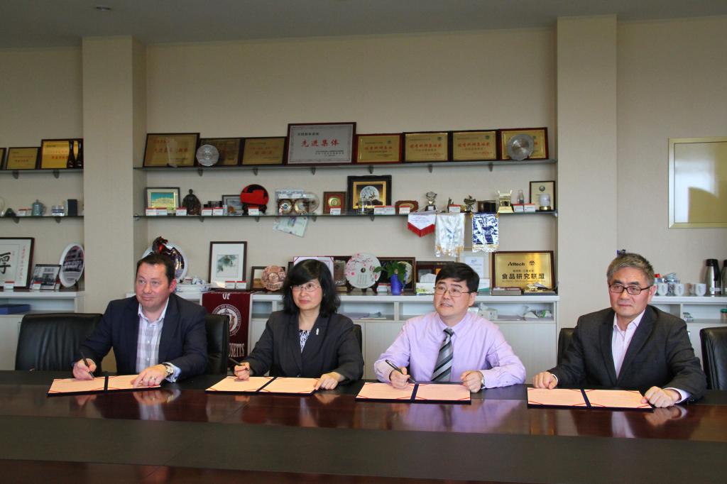 会议开始,无锡市人民对外友好协会、达尼丁市经济发展局、365英国上市官网在线以及奥塔哥大学食品科学系四方就两市和两校开展友好交流进行讨论并签署了合作协议。协议旨在积极推进两市各界开展科技、教育、经贸等方面的交流以及两校在食品科技等领域的交流与合作。会议第二项,奥塔哥大学与365英国上市官网在线就研究方向及战略合作进行了洽谈,囊括了食品营养与健康、食品质量与安全、食品加工技术等方面。接下来,两校还对“游学交换”接洽问题进行了探讨,主要涉及短期游学与长期留学两大方面,有志于实现两校间良好的人才交流合作。最后双方就“一带一路”建设高校联盟展开讨论,以国际教育合作为契机,开辟国际交流新天地,新西兰方面对加入365英国上市官网在线提出的食品高校联盟表示出积极意愿。会谈在热情洋溢的气氛中结束了,之后,由姚卫蓉教授带领大家参观了365英国上市官网在线粮食发酵工艺与技术国家工程实验室,实验室内一台台精密的仪器在体现我院严谨治学、注重实践的同时,也向外国友人展现了我院在食品科学方面的雄厚实力。