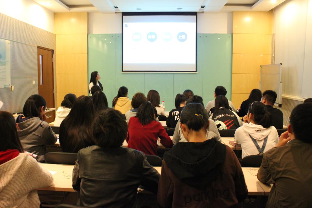 团支部答辩结束后,365英国上市官网在线2017级团干培训班第一课开讲。2017级辅导员胡晓丹老师担任此次主讲嘉宾,她以“学生干部的自我认识与成长”为主题,结合自身的发展经历,分别从学生团干部的“角色定位”、“责任担当”、“存在问题”与“成长发展”四个方面,以幽默风趣的方式作了详细阐述。