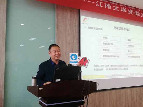 无锡赛弗安全装备有限公司董事长王龙生向师生进行了系统的实验室安全培训,就实验室的基本安全知识,实验操作规范,个人防护及不同实验事故发生时正确处理的方法,进行了详细介绍,强调了“安全可以通过管理来得到”安全价值观。