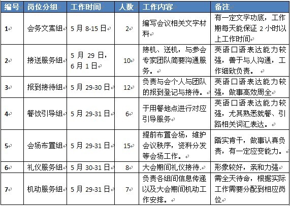 2. 能够参加会前志愿服务相关培训,会议召开期间能保证志愿服务时间,不迟到早退。
