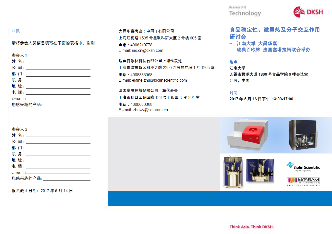 请有兴趣的师生填写参会邀请函(见附件),并发至联系人邮箱,联系人:姜小姐:021-53838811,E-mail:ins.cn@dksh.com。