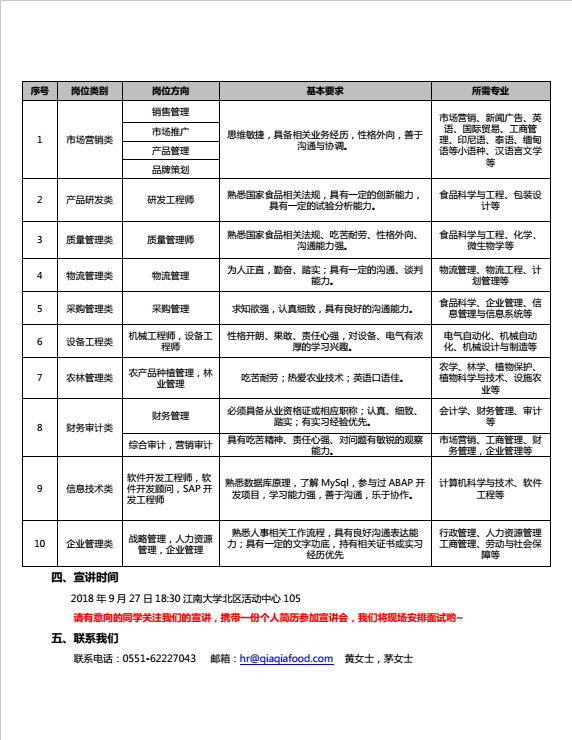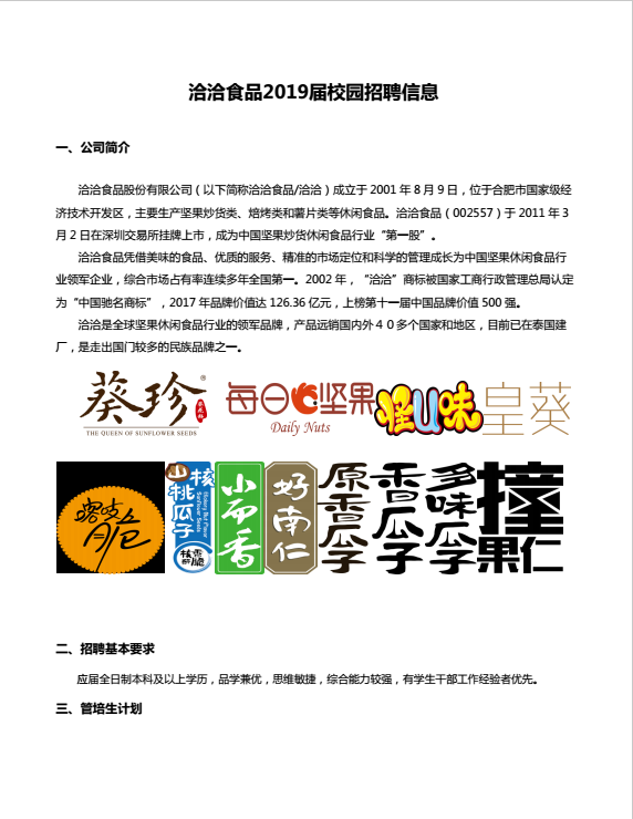 就业【2019】 9号 洽洽食品2019届校园招聘信息