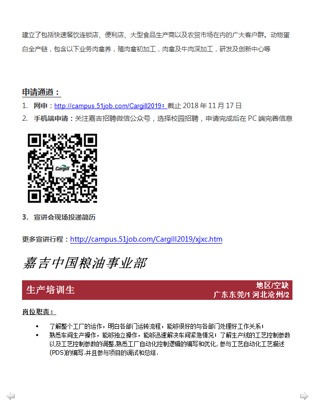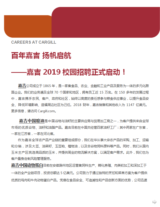 就业【2019】 11号 百年嘉吉 扬帆启航--嘉吉2019校园招聘正式启动!