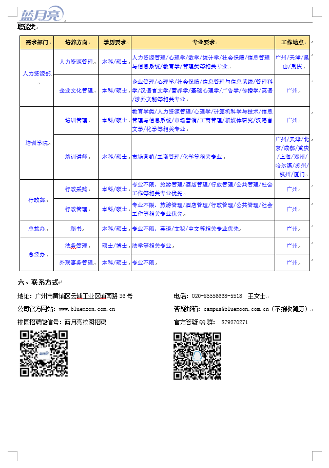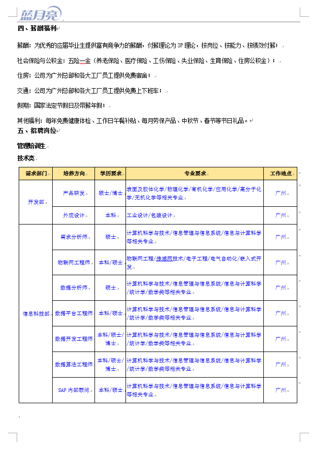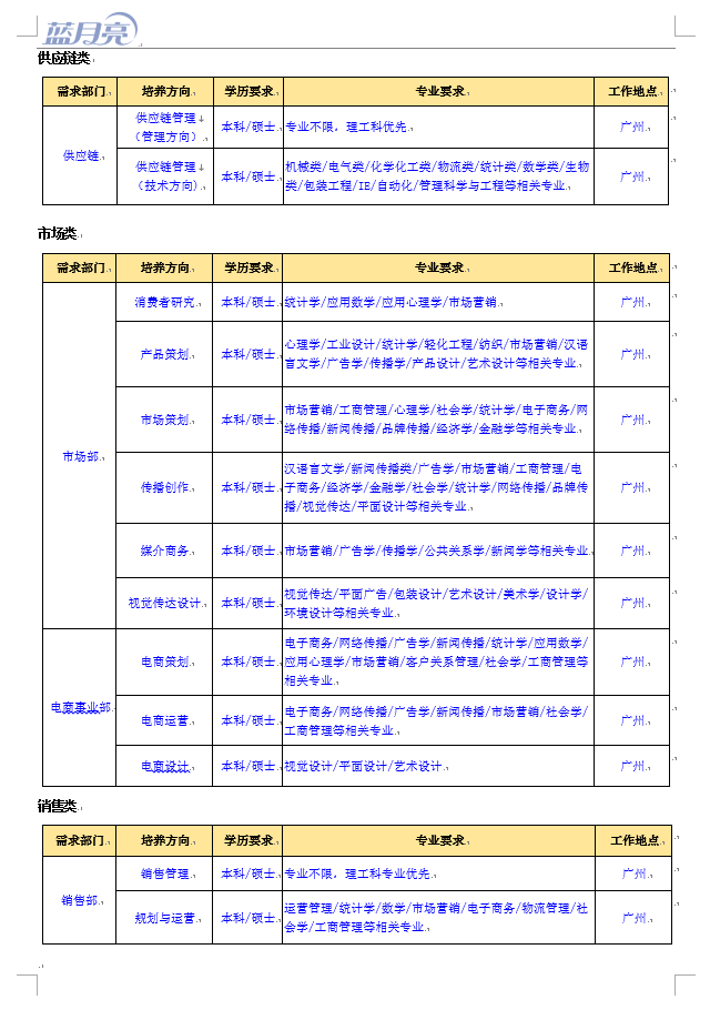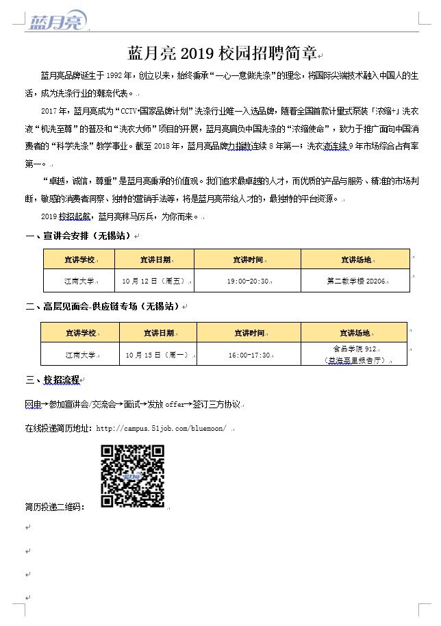 就业【2019】 15号 蓝月亮2019校园招聘简章