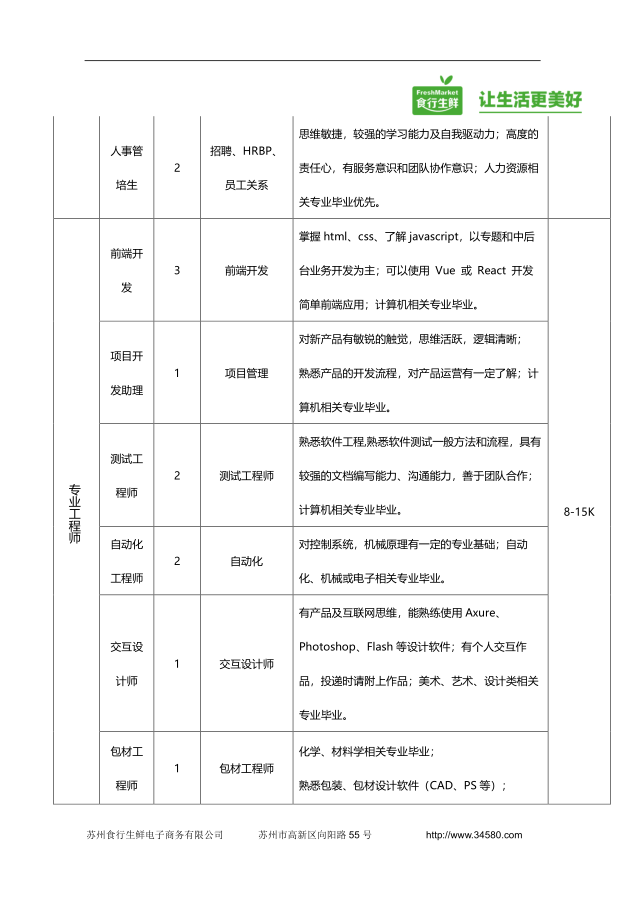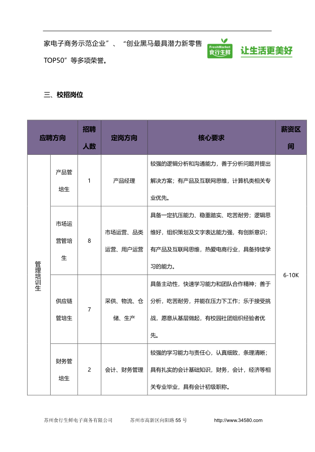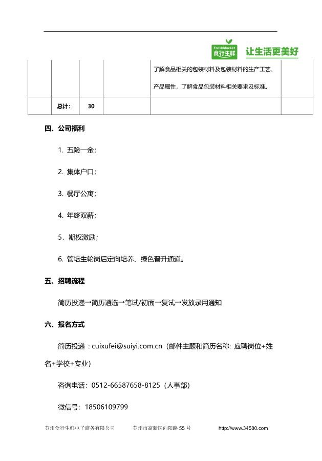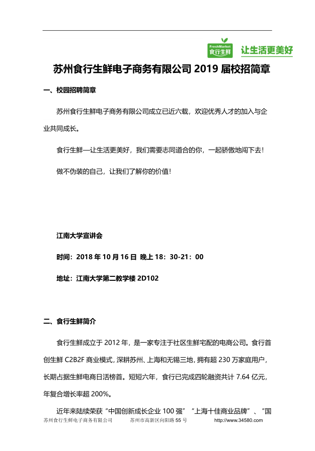 就业【2019】 18号 苏州食行生鲜电子商务有限公司2019届校招简章